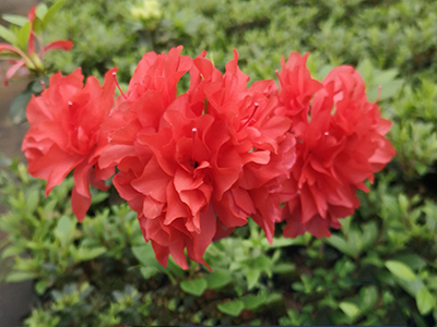 - 紅色,套瓣小花,耐寒性-12℃,始花期4月初,全光照到半蔭,長勢一般。